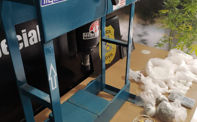 Prensa apreendida era usada para embalar e prensar drogas - DICOM SSP TO